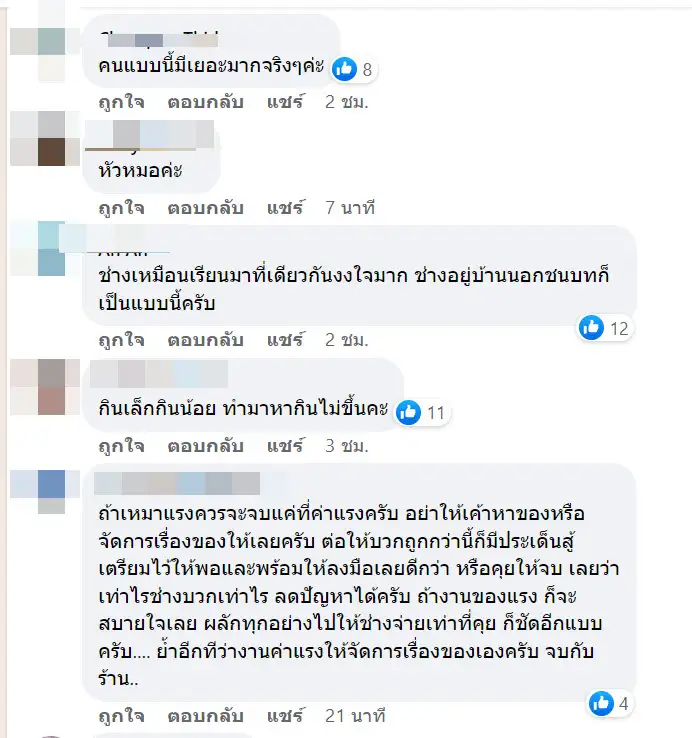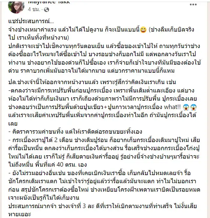 ประสบการณ์มากจ้า ช่างเจ้าที่ 3 ละ ดีที่เราให้เบิกตามงานที่ทำเสร็จ ไม่งั้นเสียหายเยอะ
