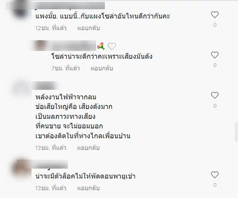 ชาวเน็ตหลายคนแสดงความคิดเห็นว่าอย่าหาทำ เพราะว่าข้อเสียงของกังหันลมผลิตไฟคือ ลมแรงๆ จะเสียงดังมาก เป็นมลพิษทางเสียงกับเพื่อนบ้านได้ ถ้าจะทำต้องอยู่ห่างไกลชุมชน บ้านสวนแบบนี้น่าจะเหมาะกว่า