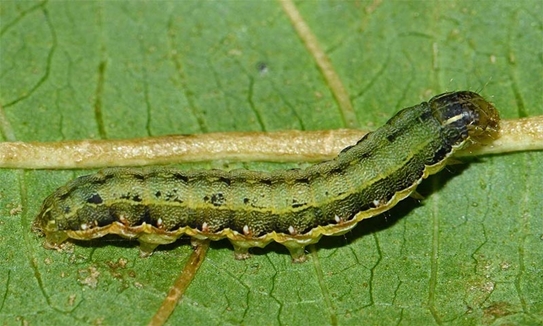 ตัวเต็มวัยเป็นผีเสื้อกลางคืน วางไข่เป็นกลุ่มสีขาวมีขนปกคลุมตามใต้ใบพืช หนอนกัดกินใบอ่อนและยอดผัก หนอนวัยที่ 3 ขึ้นไป จะกัดกินทุกส่วนของพืชทำให้เกิดความเสียหายอย่างรุนแรง พบการทำลายตามแหล่งปลูกผักคะน้าทั่วไปเมื่อหนอนโตเต็มที่จะเข้าดักแด้ในดิน มักแพร่ระบาดในช่วงฤดูร้อน