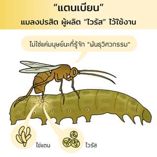 1. แตนเบียนไข่ไตรโคแกรมมา มีขนาดลำตัวประมาณ 3 มิลลิเมตร ทำลายไข่ของหนอนใยผัก ไข่ที่ถูกแตนเบียนไข่เข้าทำลายจะเป็นสีดำและไม่ฟัก