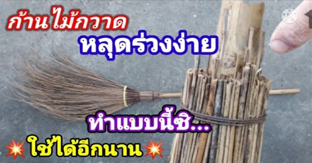 (คลิป) ไม้กวาดก้านมะพร้าว ก้านหลุดง่าย ทำแบบนี้ซิ ใช้ได้อีกนาน