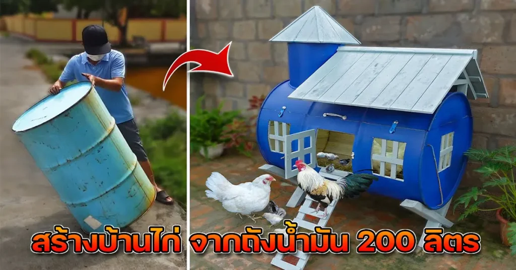 (คลิป) DIY สร้างเล้าไก่ ด้วยถังน้ำมัน 200 ลิตร
