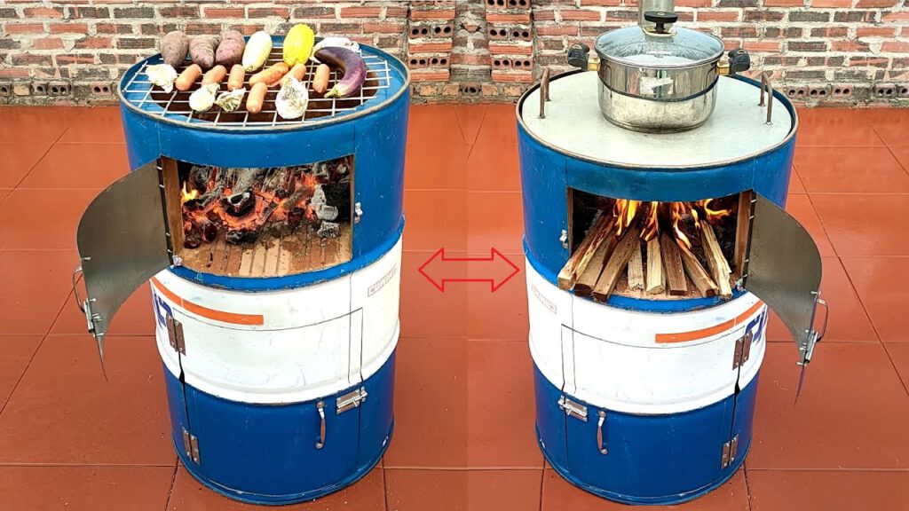 (คลิป) DIY เปลี่ยนถังเก่า 200 ลิตร เป็นเตาฟืน-ถ่าน อเนกประสงค์ ไอเดียทำเอง จากปูนซีเมนต์ : วีดีโอ เกษตร