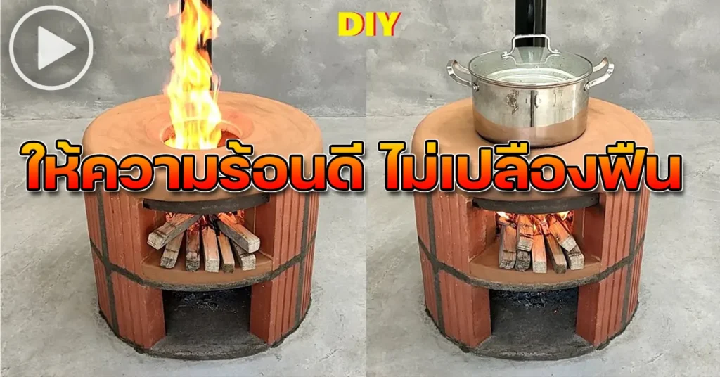 (คลิป) DIY วิธีทำเตาพืน สุดสวย จากอิฐแดงและดินเหนียว