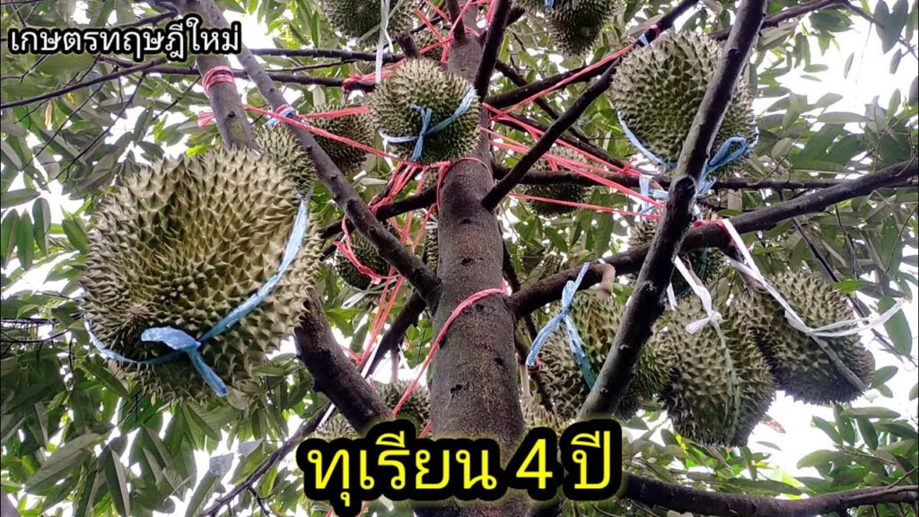 (คลิป) ทุเรียน 4 ปีติดลูกปีแรกสมบูรณ์มาก สวนหลังร้านลาบ : วีดีโอ เกษตร