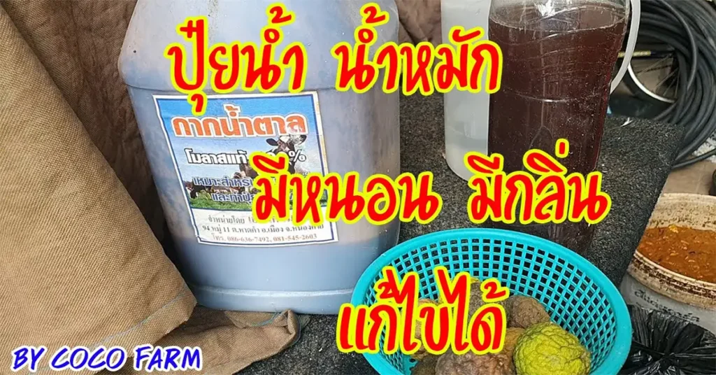 #น้ำหมักชีวภาพ, #ปุ๋ยน้ำ, #หนอนในน้ำหมัก, #แก้น้ำหมักมีกลิ่น, #การใช้จุลินทรีย์สังเคราะห์แสงดับกลิ่น, #ใช้มะกรูดดับกลิ่น