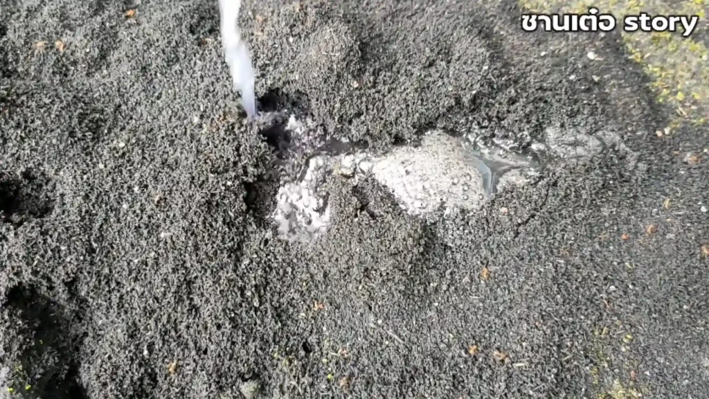 – ตักไปราด-รด รังมดคันไฟได้เลย หรือเราจะนำใส่ฟ๊อกกี้ไปฉีดพ่นตามรังของมดคันไฟก็ได้เช่นกัน ราด-รด ให้ท่วมรัง 2-3 รอบ